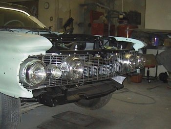 Next came the painting and assembly of the parts that make up the nose. All but 3 of the letters on the grill are NOS. 2 headlight bezels are NOS and the fenders are NOS.