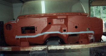 I primed the rust-free floorpan with red oxide primed, just like the factory originally did.