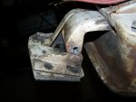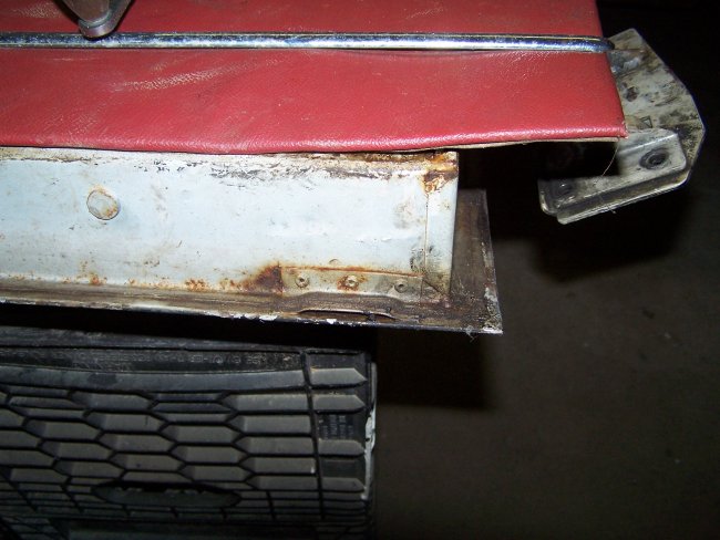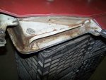 and the dents are pulled out. The holes were then filled with bondo. The bodyman did a poor job of pulling out the dent because the bondo was 1/4" thick. New side panels are relatively inexpensive so I cut out the old one out and welded in a new one. In the above pictures you can see the exposed inner structure just before I primed it. And as always Wurth Body Wax was applied as a protectant prior to welding. | ||