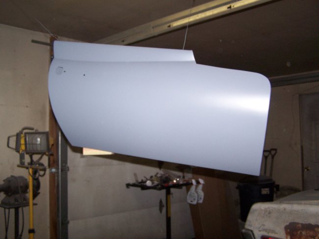 The door was blocked on the car, but was primed seperately. Even with a great door reskinning job, filler still had to be used so that the gaps were even around the doors and the contour of