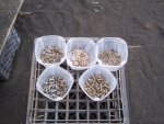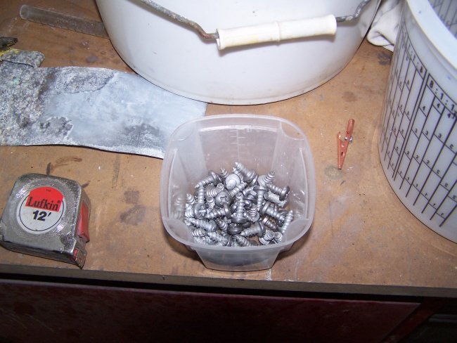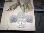 The screws were then screwed into a piece of copper screen which I was lucky enough to find in the garbage at work several years prior. Without the screen I would have had to wire each screw individually. I plated about 62 screws at once, which required about 8 amps on the power supply. It took about an hour to plate them. Once out of the plater, the parts are submerge in the pickle solution to neutralize the strong plating solution. Then they were rinsed with distilled water, blown off with air and allowed to dry. | ||