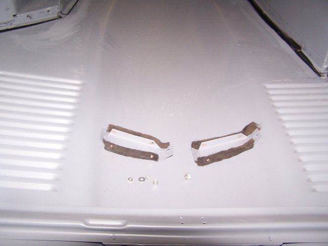 I thought it was worth mentioning the brackets pictured above. They seem to be missing on quite a lot of restorations that I have seen online. I'm not sure why. They are used to fill a void below the air ducts. They have felt strips attached to the top and bottom. Due to the lack of documentation I can only assume they go on before the bonnet is painted. The last two pictures show the correct orientation and hardware.