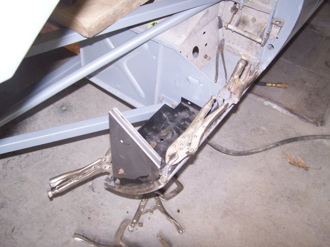 The left side was done just like the right side, but using the battery tray to set the alignment. It was at this point that I learned that the slotted holes at the base of the new battery tray were in the wrong location. I will have to weld the slots up and make new ones when the time comes.