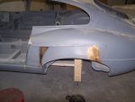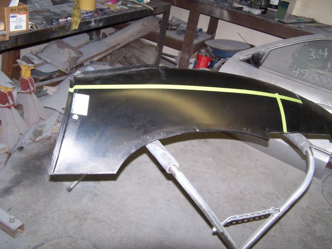 into a $858 panel and tossing out 2/3 of it! Using the reduced panel as a reference a smaller section was cut away from the car. In the fourth picture you can see where the rear wing was