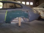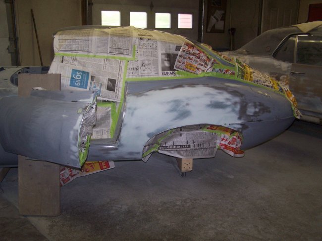 coat of Evercoat Polyester filler. I then blocked it with the door properly aligned. With a couple coats of PPG DP50LF epoxy primer, the bodywork was officially completed on June 2, 2010. Exactly
