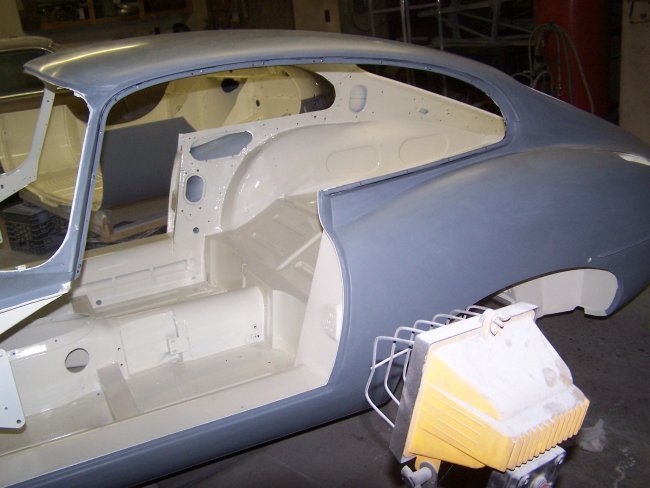 With only the outside left to paint, the body and cart were lowered to the floor. I then sanded the primer first with 400 wet followed by 600 wet. I only use 3M or Meguiars sandpaper.