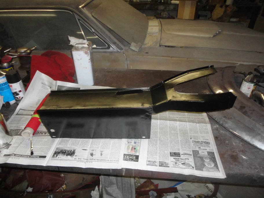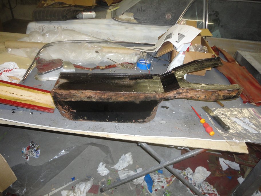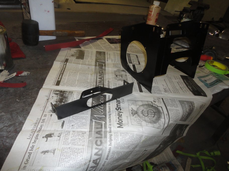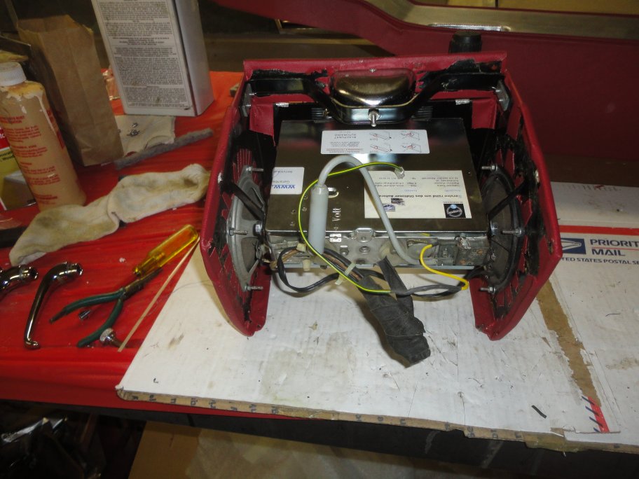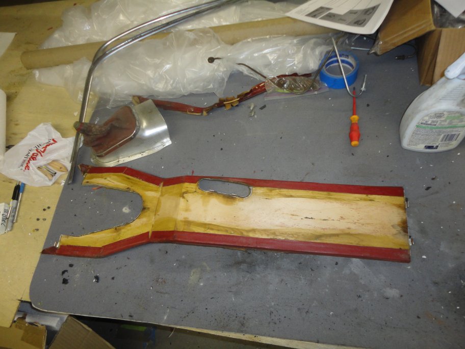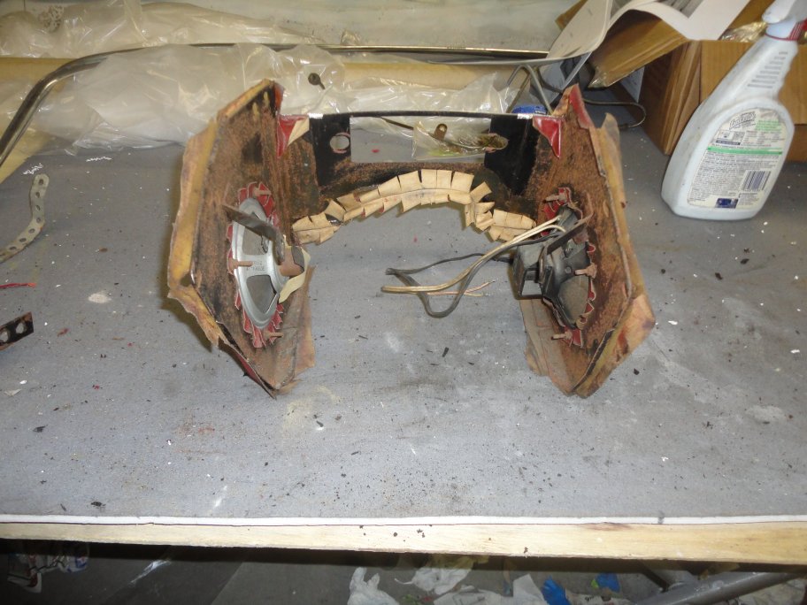 39) The remaining metal frame of the console is easly straighten, sandblasted, primed and painted. It should be noted that what appears to be kinks/ bulges in the metal on the sides by the up sloped section, are actually needed so that the console fits under the radio console.