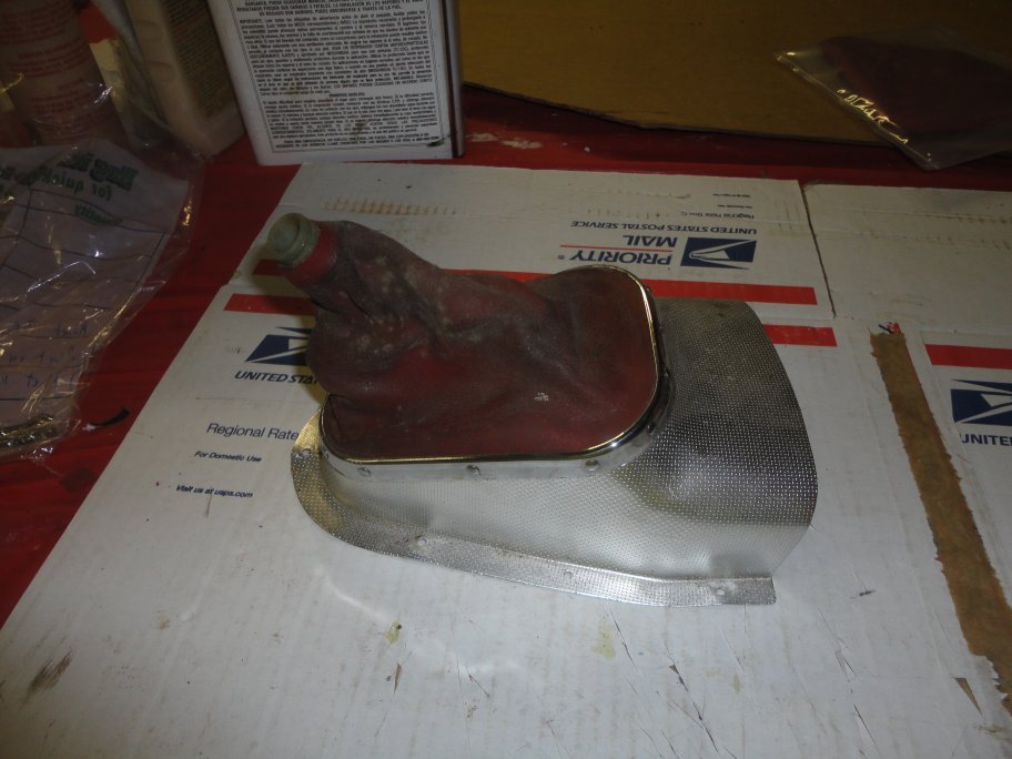 44) The shift boot is held in place with chrome rivets which needs to be drilled out. I matched the rivets up with some stainless steel ones I found at a local Ace hardware store. I did have to drill the holes a tad larger to get them to fit though.