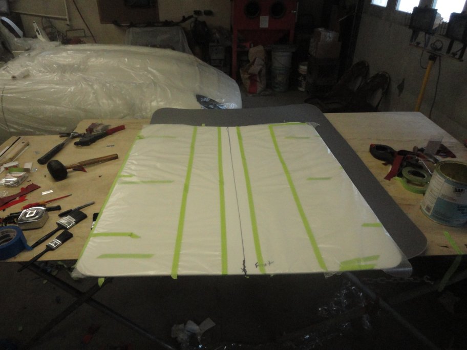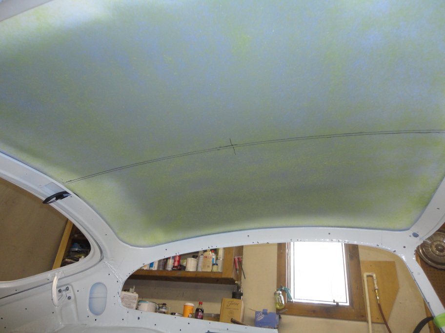 4) The first step is to mark the center line of the roof. The headliner I have was only 1 inch wider then the roof, so accurate placement was important.