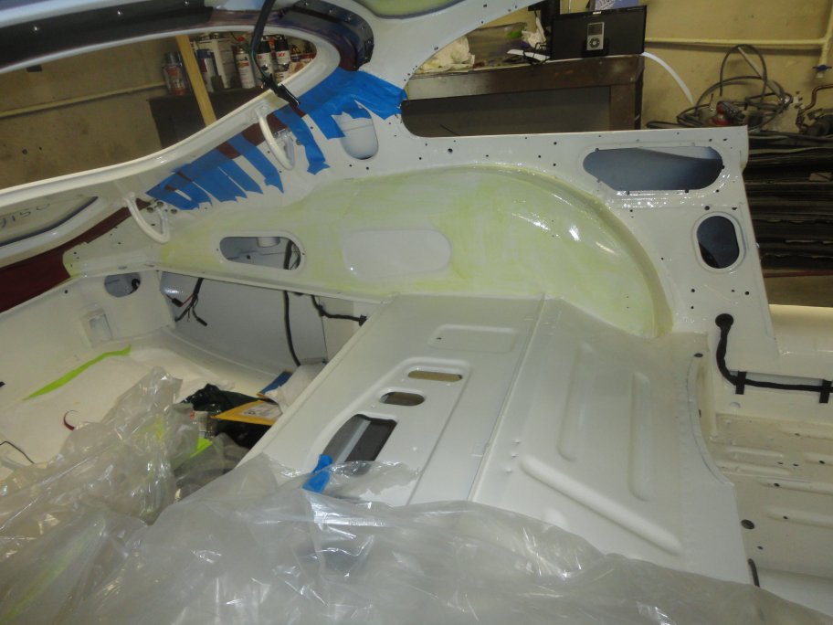 areas that were masked off as well. This was done to prevent the foam from sticking down into the recesses and creating bumps in the mocquette covering.