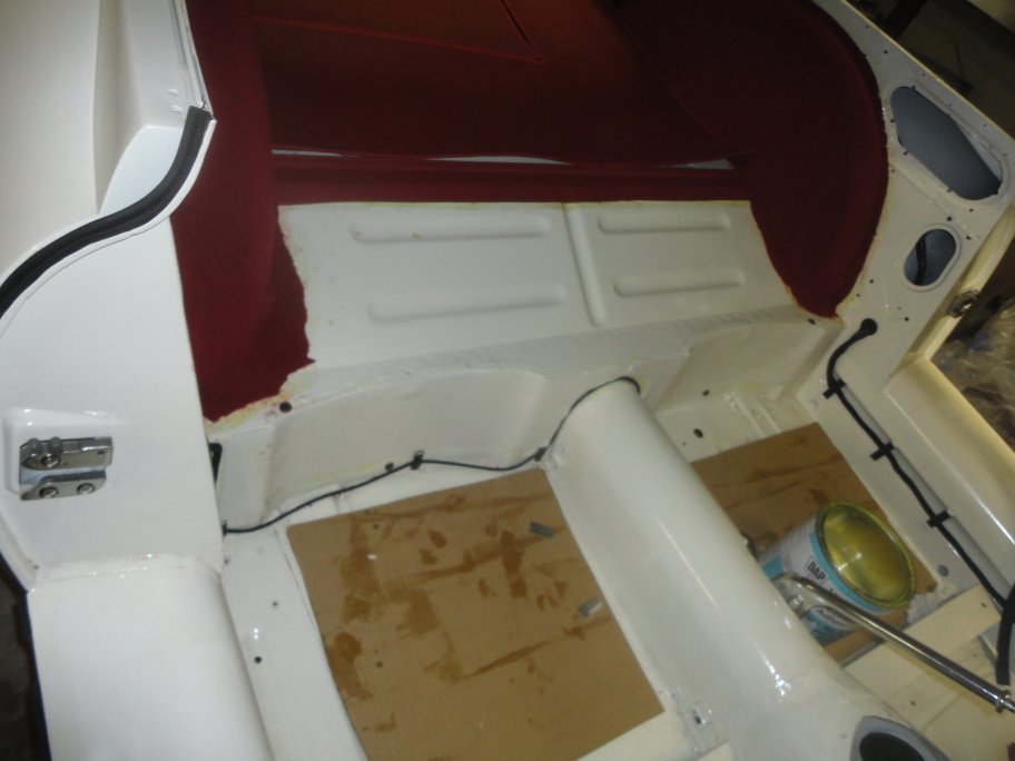 it prior to upholstering it. This needs to be done after the wheel arches are covered in mocquette so that a good fit can be obtainted.