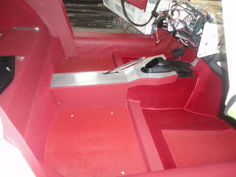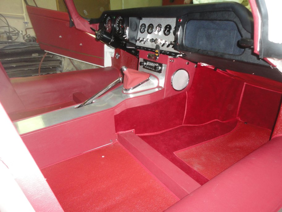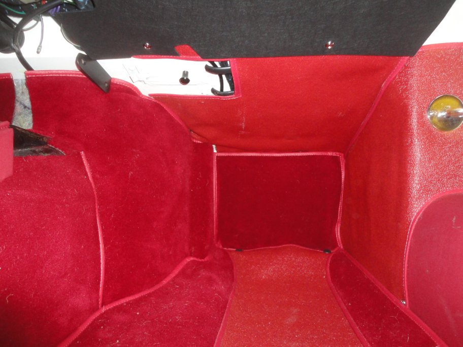 68) Here is the completed passenger's side. The plastic carpet retainers (black) are installed in this picture. Notice the vent door and the exposed wiring. I check this several times. The wiring originally showed on this car. This may not be true for other Series I cars.