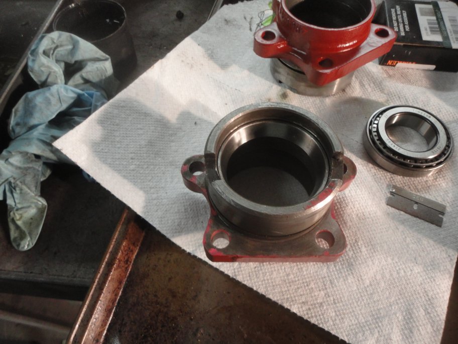 11) Once the backlash is set, the whole thing has to be taken appart again to great the bearings and install the seals. Note the outer bearing is captured by the seal, so you must put the bearing in the housing before putting the seal in.