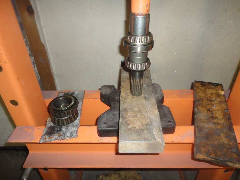 1) The outer bearing races for that go into the output shaft housing are easily removed with a hammer and a drift (brass rod) or chissel. The new outer races are also easy to install with a hammer and a brass drift. Brass is recommended since it will not damage the race.