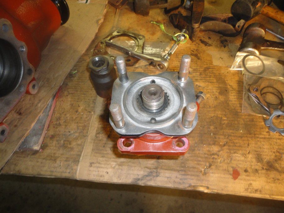 6) Next to go on is the output shaft flange. The output shaft seal is not installed at this time. The manual recommends doing it this way. I guess is to prevent any drag from the seal messing up the dial indicator reads.