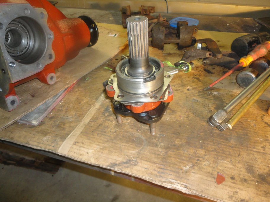 9) The nut should be put on and tightened. However, the locking tabs should not be bent over, since the hole thing has to come appart, not only to add/removed shims, but to put the seal in.