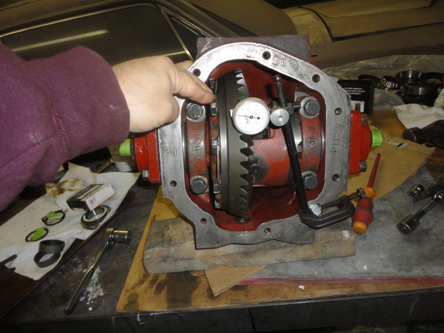 bearing on the pinion from the outside. You have to draw the inner bearing in using a spacer and a nut. You must use a dial indicator mounted inside