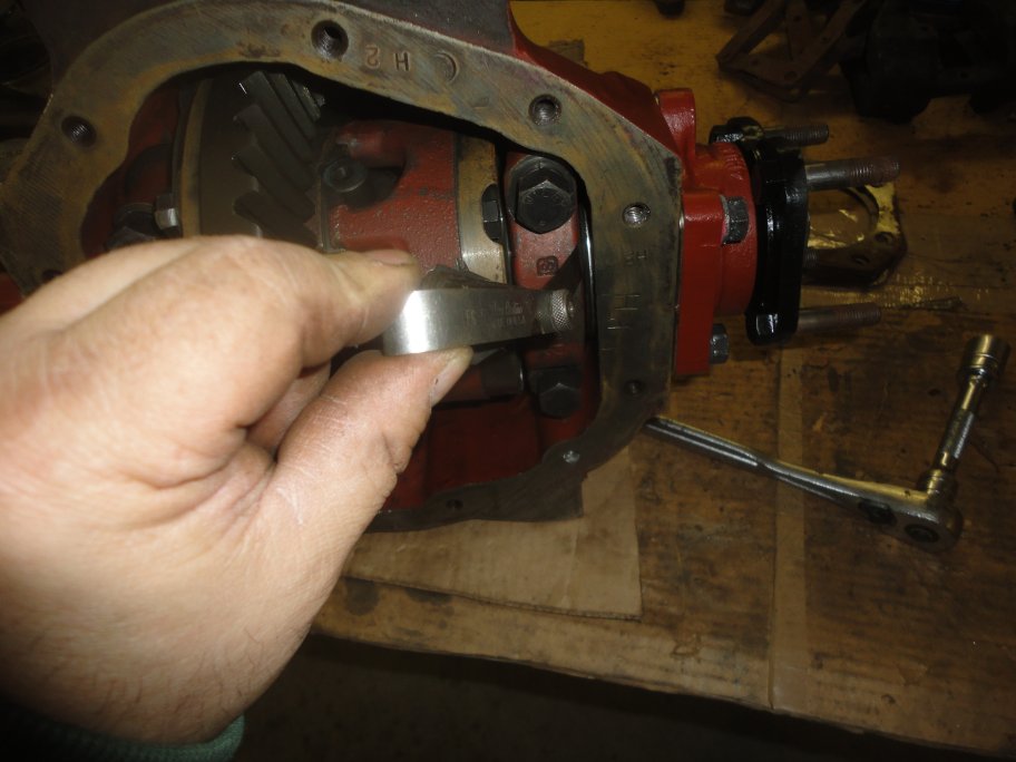Once you are confident that the backlash is set, the carrier bearing caps must be tightened down. This may throw the backlash adjustment off, so the backlash