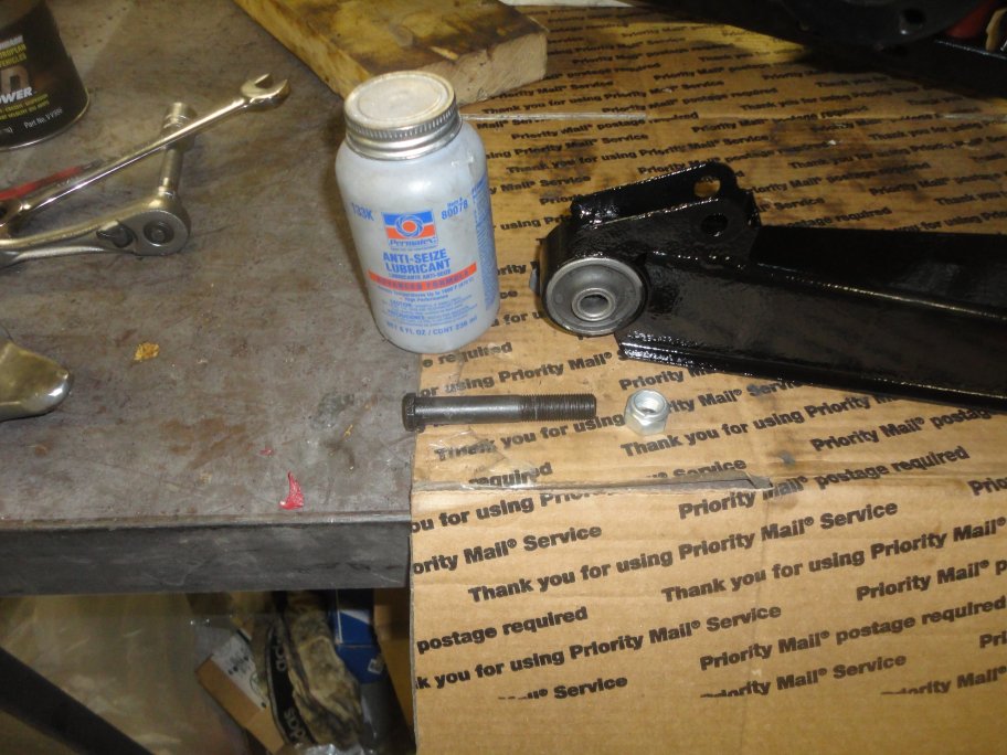 10) The radius arms are bolted to the lower control arms with special low-profile bolts. The low-profile is needed so that the hub assembly clears the bolt head. As usual, anti-seize grease should be used.