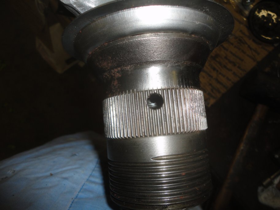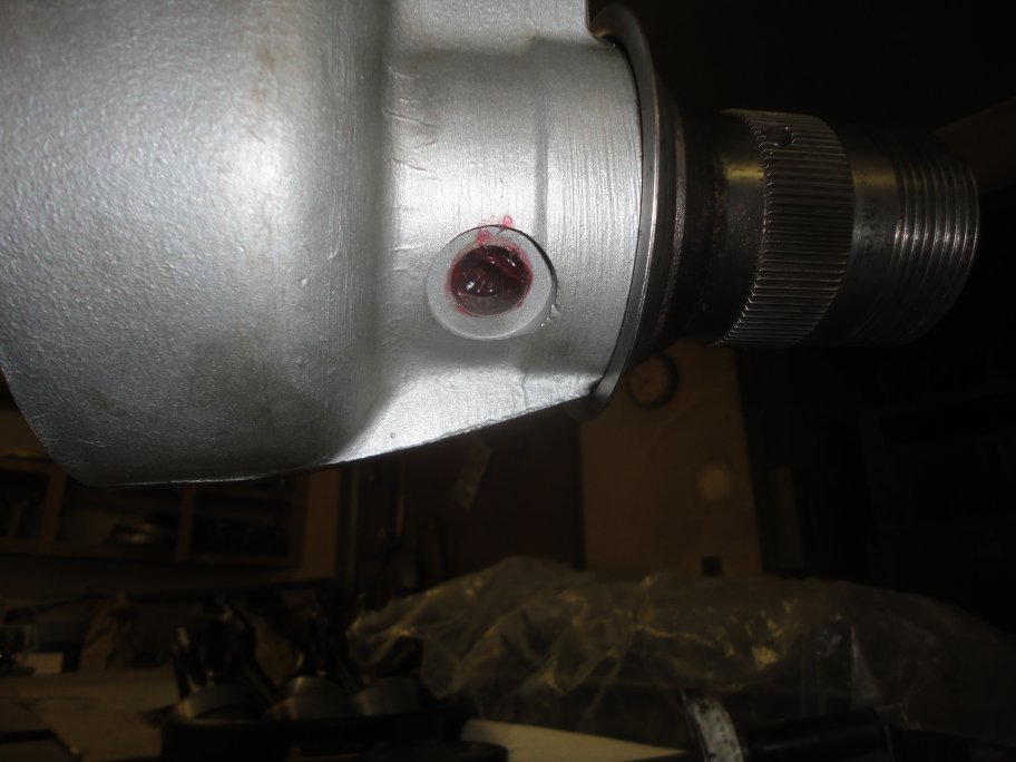 4) The grease nipple (not shown) can now be installed and the bearings can be greased. When grease comes out of the weep hole, you know that you are done.