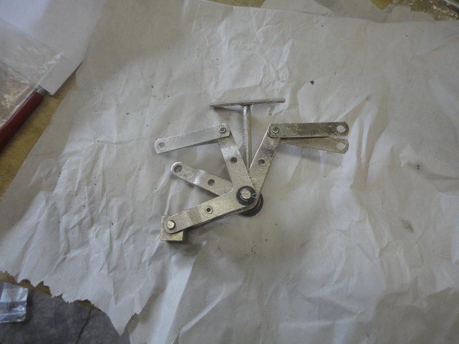 9) Here is the parking brake levers assembled after plating in nickel. Its good to lubricate all of the pivot points with a good penetrating oil. I used spray lithium grease.