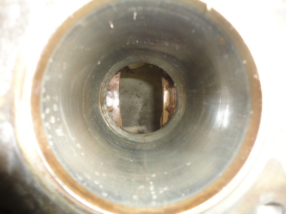 42) Here is a shot looking down cylinder #4. It did not look any different then the other 5. So whatever reason the piston was changed was probably related to a valve.