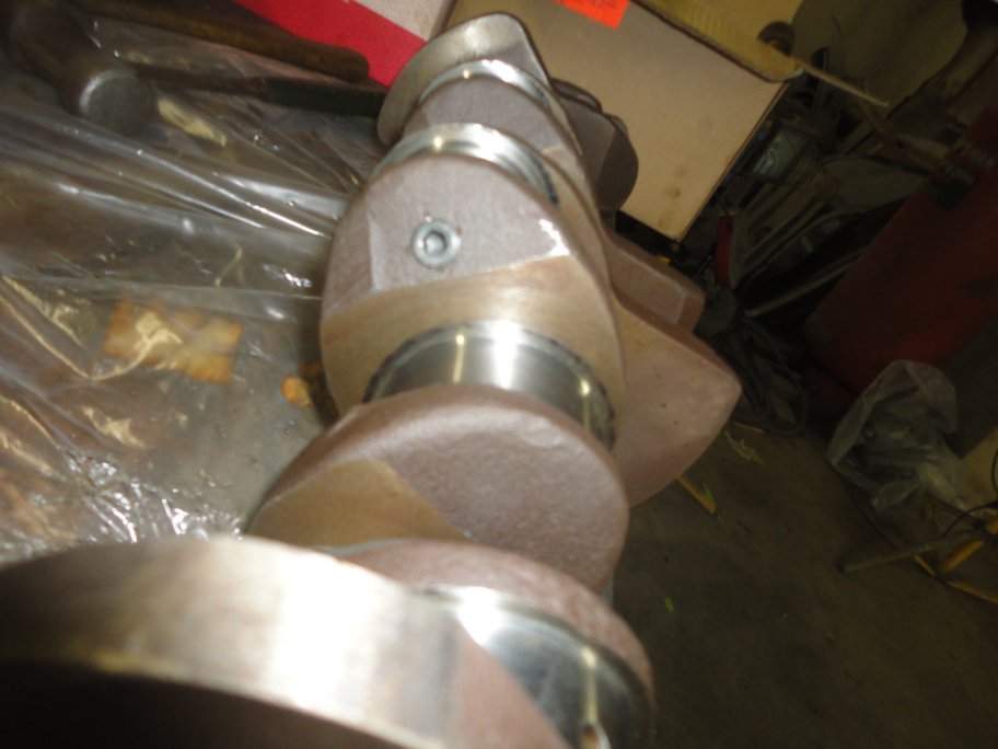 12) The crank had been turned 0.010" and was balanced. I had the plugs pulled out of the crack so that the oil passages could be cleaned out by the machine shop. Here is a new plug ready to go in.