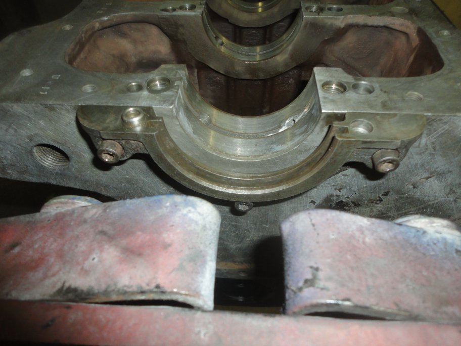 19) The crank endplay is set using special U-shaped shims that are on either side of the center main bearing cap. There are only a couple of sizes to choose from but you they both do not need to be the same. In my case I only needed to use the standard size.
