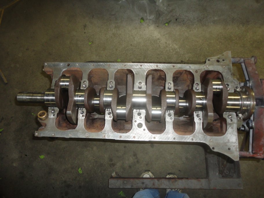 23) Here is the crank after the main bearing caps have been torqued and the locking tabs have been bent over.
