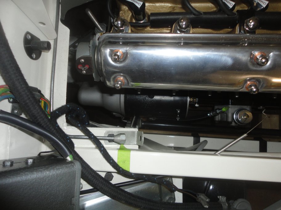 8) The right torsion bar mount at the rear of the engine frame came very close to the starter. It would have cleared by a lot if the exhaust manifolds weren't present, but I was still able to clear the starter. Barely.