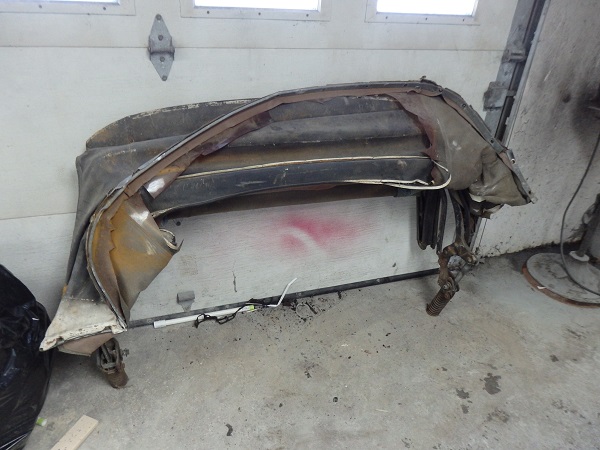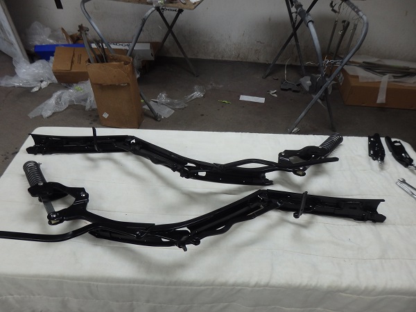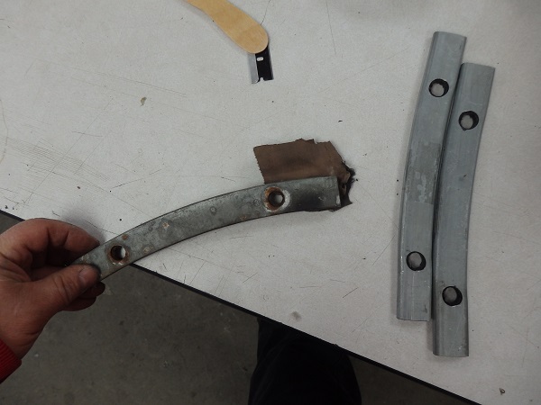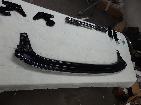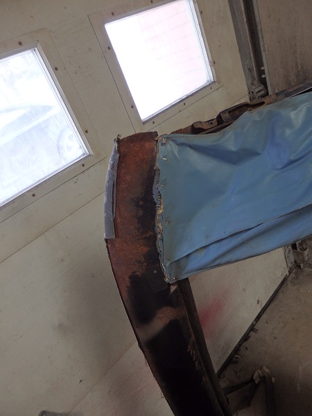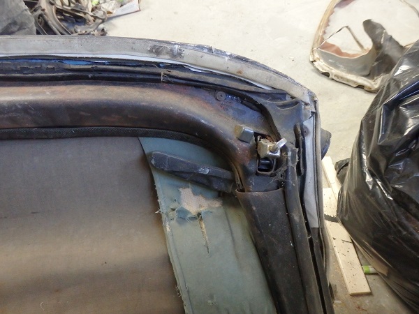 ![]() The frame was in great shape. I just had to repair a couple teeth on the head bow that are used to retain the tack strip. Once repaired I sandblasted the frame (dismantled) and painted it semigloss black (partially assembled). I replaced the tack strip on the header bow (Eckler's, PN 17526: Conv Tack Strip 1/2 X 5/16) and the one for the rear window (Eckler's, PN 17525: Conv Tack Strip Conv Tack Strip 5/8 X 3/16). The rear tack strip was originally stapled in place. I've seen some crazy ways of installing new ones. Screws from the top, poprivets from the side, etc. The result doesn't look correct if you go that route. All I did was clean out the channel so that it was bare shiney metal and bedded the tack trip in place with SEMs general purpose panel bond. I bought new chrome hardware for the frame and stuck with the original hardware for the nuts and bracket bolts as the repos are not correct. I installed the top frame on the car, but could not adjust it until the side windows and windshield header moldings were installed. |