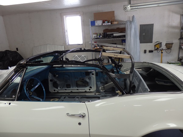 ![]() I would say that installing the convertible well stainless moldings rates a 9.8 on the pain-in-the-ass-o-meter. The best trick I found was to install the clips on the well lip, set the molding and pry they ears on the clips in place usings a putty knife. A liberal amount of masking tape was used to prevent the paint from chipping in the process. The original rain gutter was missing, so I installed a repo. The repo is a nice part, but wouldn't you think they would be smart enough to mold it in the correct color? Guess not. In 67 & 68 Chevy flattened the lip on the wheel houses at the top so that the convertible frames could fold down low enough. They put some padding over the lip. Not sure if it was originally just a waffled cardboard or a thin strip of jute padding, since the remnants found on the car were very brittle. |