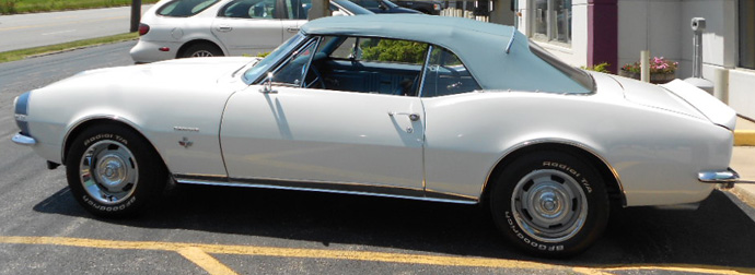 ![]() Here are the only pictures I have found of 67's with blue top frames. The first onw is from a real Pace Car, the other is from an all blue car. |