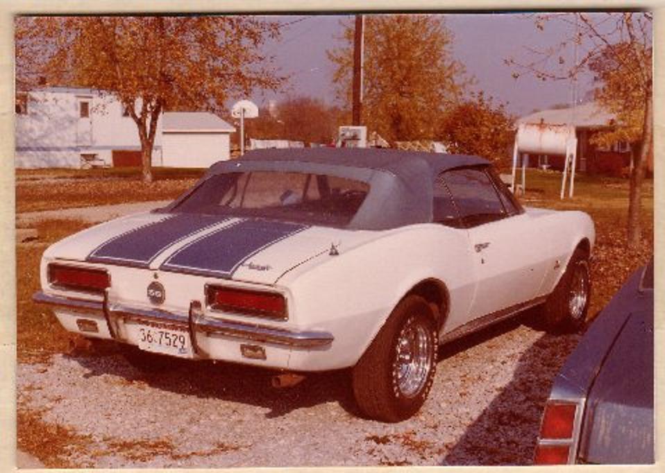 Blue convertible tops are a rare option on 1967-68 Camaros. This probably has to do with the fact that blue top cars had to be specially ordered and blue didn't match many of the interior and exterior colors. Of the 25,141 1967 convertibles built only 1,346 were produced with a blue top. Of the 20,440 1968 convertibles built only 1,259 were produced with a blue top. Note: Blue tops were not available in 1969 (according to the Camaros.org). So roughly 5.7% of all 67/68 convertibles came with a blue top (designated by a "4" next to the Paint code on the cowl tag). I have never seen a car with an original factory blue top in person. I have seen several cars with "4" on the trim tag, but they have had their tops replaced with white ones. So this made it difficult in identifying the correct shade of blue for my top. Here are the only vintage pictures that I am aware of, that shows a 1967 Camaro with a blue convertible top. They are well known pictures of Dave Welday, GM Indianapolis Zone Organizational Manager, with a pace car replica taken in the spring of 1967 at the Indianapolis 500 Speedway. The top is medium blue in color, but you have to allow for the age of the photo and the fact that it had to be scanned in by someone.