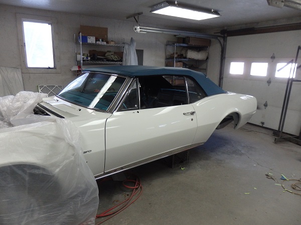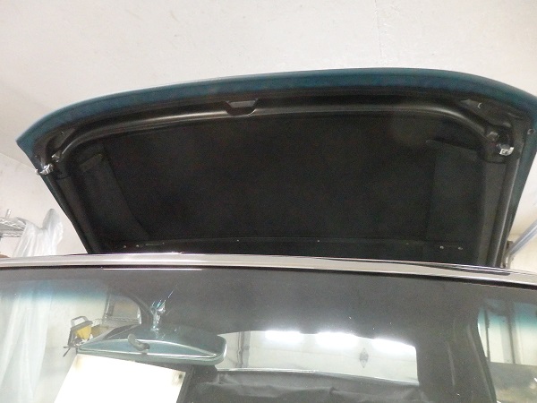 Here it is with the top installed. The wrinkles will come out of it once the car sees some sun as they are caused by the material bonded to the underside and its winter time when the top was installed. |