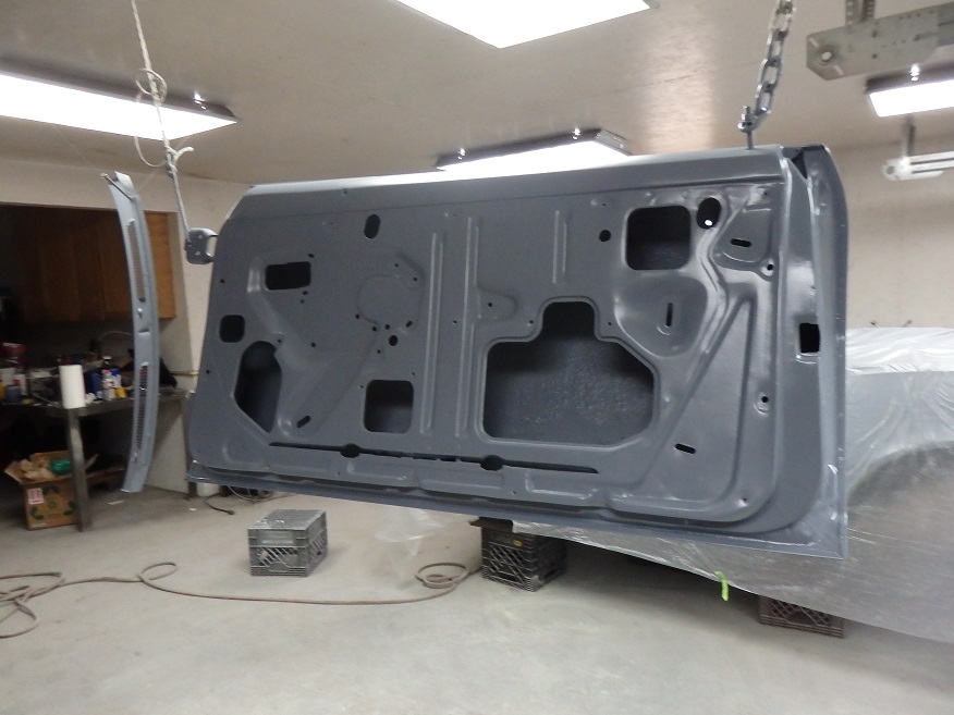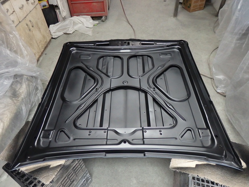 It took me an afternoon to get the jambs fixed on the hood. For the top side I used DL50LF gray epoxy primer, but for the underside I used black DP90LF since the underside was supposed to be black. I like to use