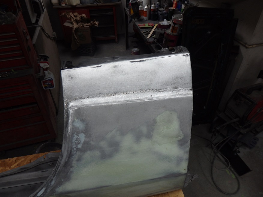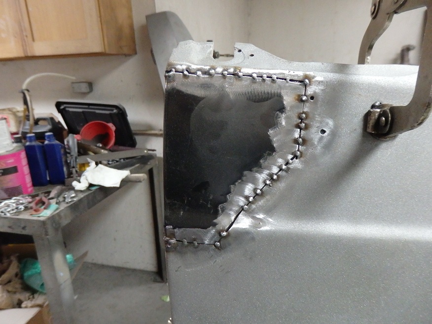 of, which was uncovered after sandblasting. To fix it , I purchased an AMD lower fender repair panel and butt-welded in only the section I needed. The repair panel had the correct