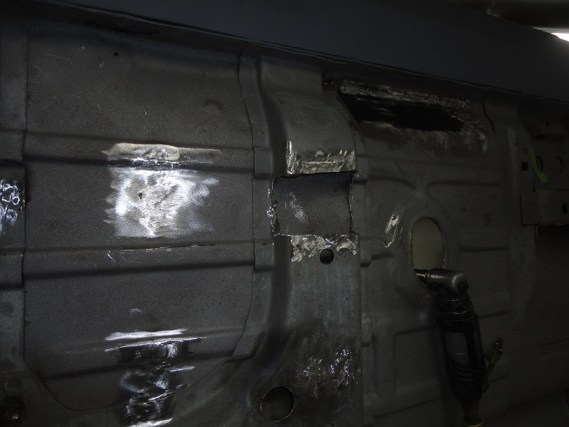 With the welding all done, next came the filler work. As with my other repairs, I started with Evercoat chopped fiberglass filler and fiished with Evercoat Rage Gold polyester filler. The floor was then