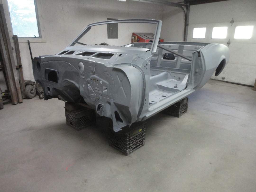 With the dash welded in, the firewall and dash were put in epoxy primer.
