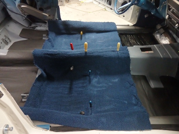 The carpets, I bought directly fromAUto Custom Carpets (AAC). It's good to see that they are starting to put the correct dark blue vinyl trim on them.