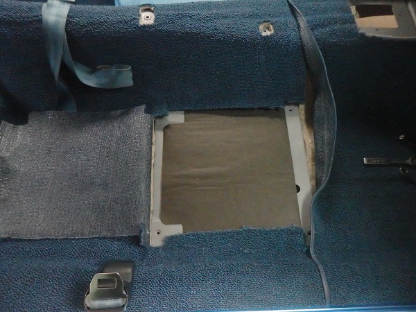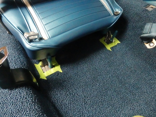 In 1967 the front seat track bolts are covered by the carpet. It took a little bit of research to figure out how the factory cut the carpet. What I did was to place the seat and used some pick tools to locate the track bolt holes. I then