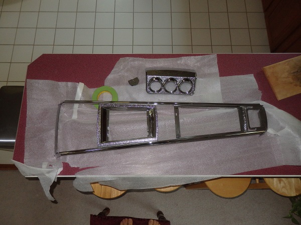 I spent a lot of money to get the correct console with the correct PA coded guage pod. I sent the pod housing and the upper console piece off to Paul's Chrome as the defects in the chrome really stood out.