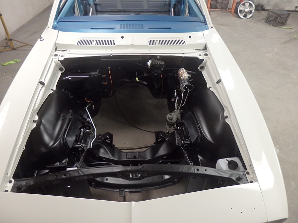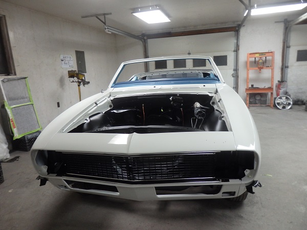 I bought NOS emblems for the car. The only one I couldn't get NOS was the grill "SS" emblem. The inner fenders and lower fender extensions were installed on a table with a blanket to protect the paint. I protected the inside face of the inner fenders from scratches with masking tape when I slid the inner fenders in place. Everything was bolted together using the correct hardware purchased from AMK. |