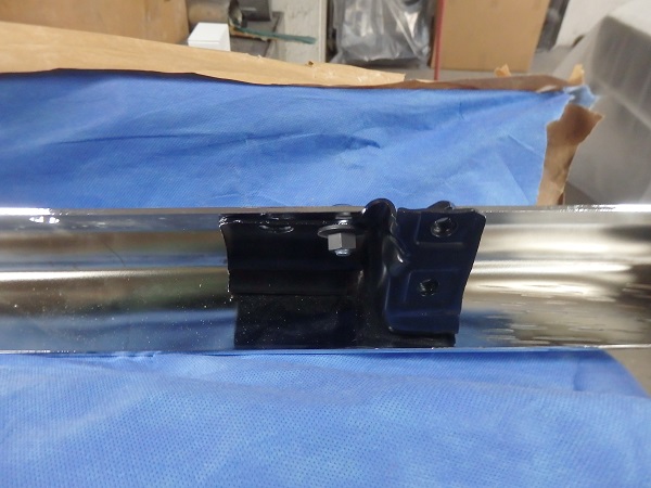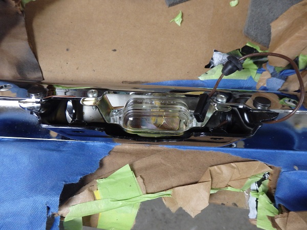 ![]() I bought a repo rear bumper, but used original mounting brackets. The bumper comes with the center bracket rivetted to it. I had no easy way to replace it, so I justed painted it black like the original bracket was. They make a pretty nice repo license plate light, so I bought one of those as well. |