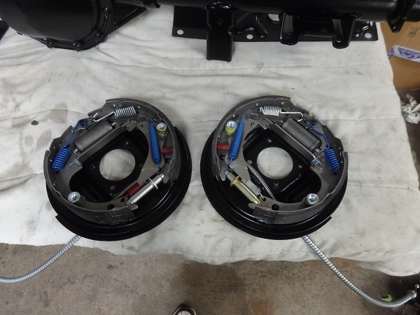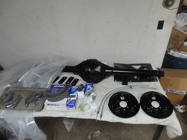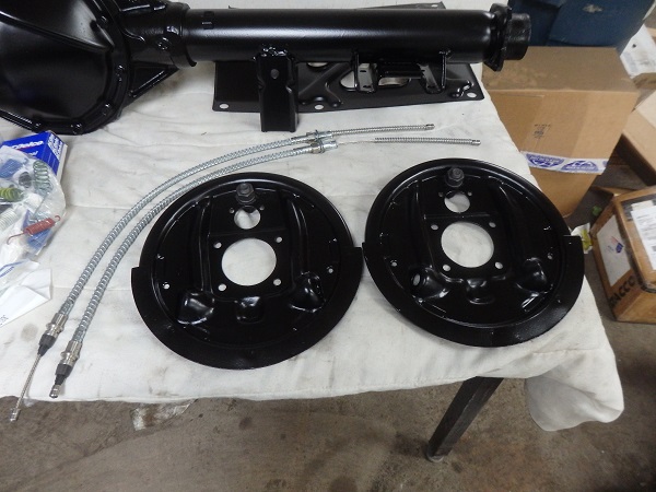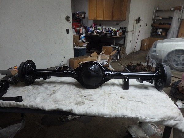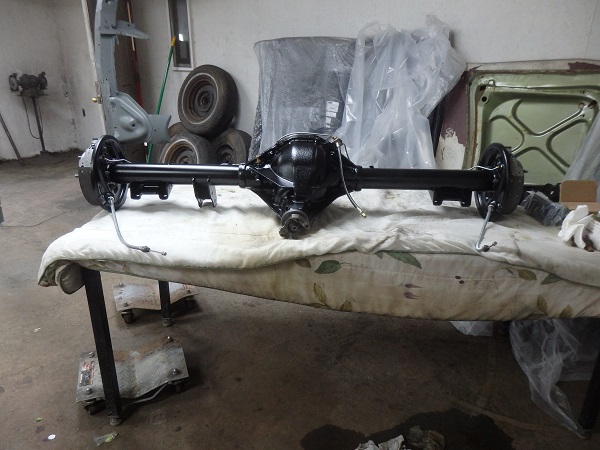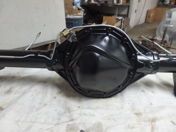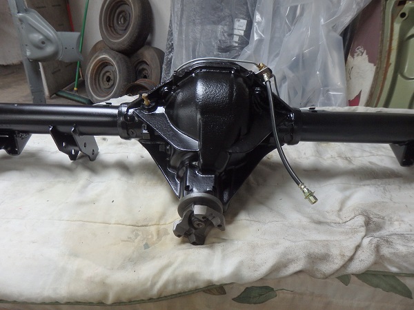 ![]() After painting the rearend it took no time at all to put togther. The brake lines are from Inline Tube, which fit like a glove. I did have a delay as I had to locate the correct pinion yolk (974 for 1310 U-jounts). The rear end came with the TH400 version (9210), which is for the wider 1330 U-joints. |