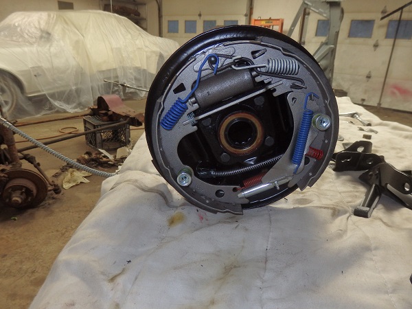 ![]() I sandblasted everything and primed the parts with epoxy primer. I replaced the pinion seal, just in case and then painted the rearend parts with SEMS Hot Rod Black. The original mono leaf springs were actaully still with the car when I got it. All I did with them was to sandblast them, replace the eye bushings and painted them with a Krylon Smoke Gray, which matches the original factory color. I bought all AC Delco parts to rebuild the brakes. The emergency brake cables are stainless steel versions, which I got due to concerns that the zinc plate repos would corrode. |