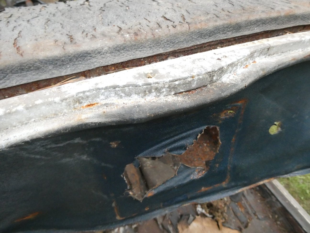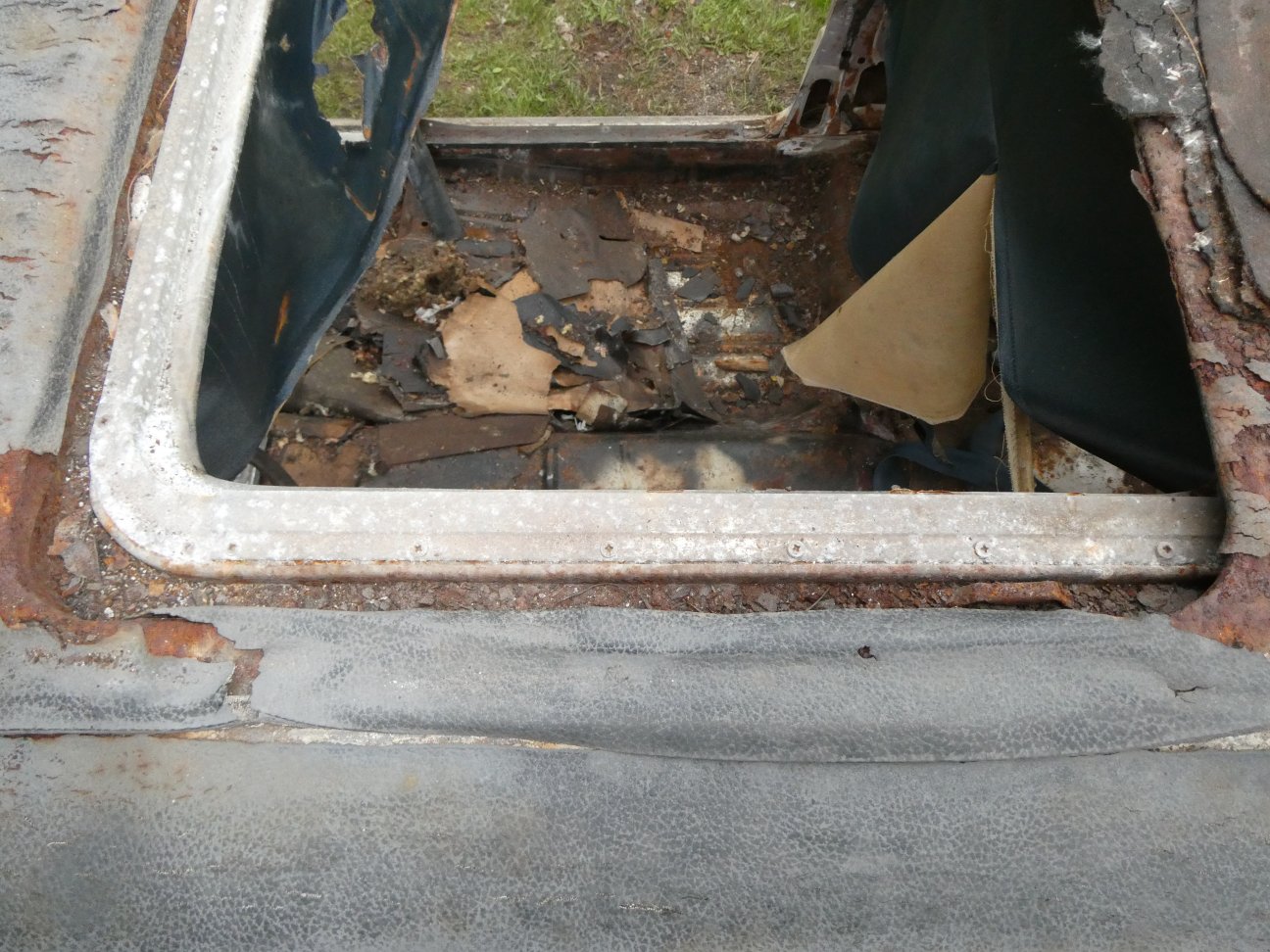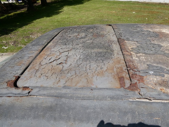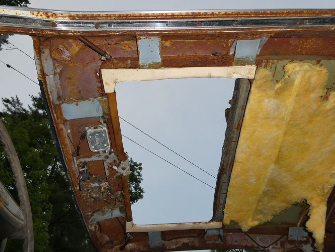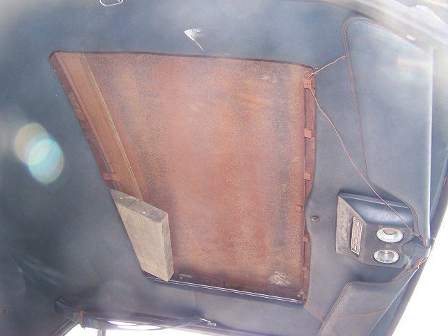The original sunroof panel was lost when this car was pulled out of a salvage yard back in the 1980's. The story was that it blew away when being hauled down the highway. At least if came with a correct replacement, which I am sure was