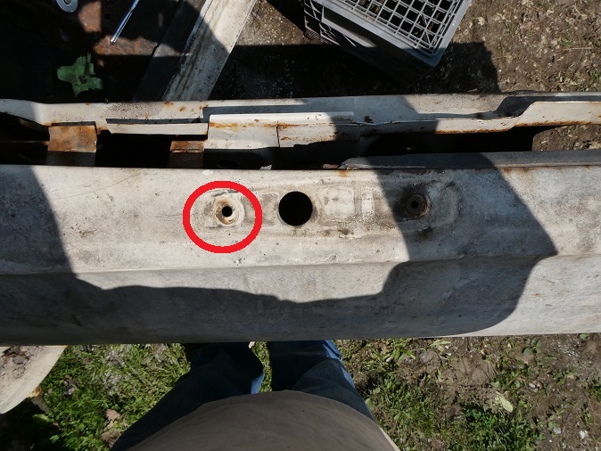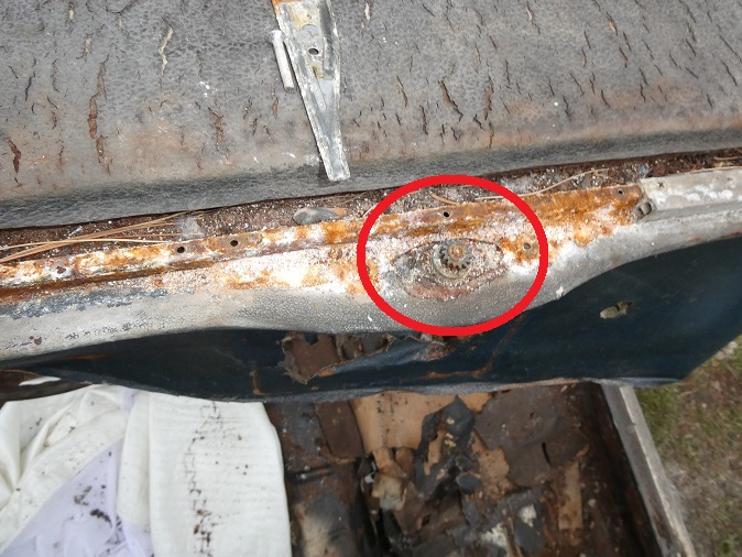 hole as the factory rivenut was missing and there was a speed nut used to hold the mirror in place at the front.