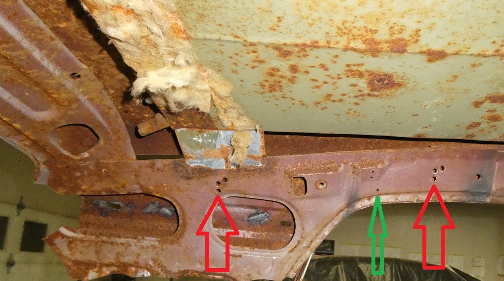on the right, the red arrows are pointing to the new listing rod holes that ASC made. The green arrow is pointing to another hole that ASC made. I'm not quite sure at this time, but I think it has to do with with them needed into add a scew