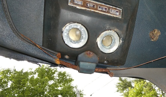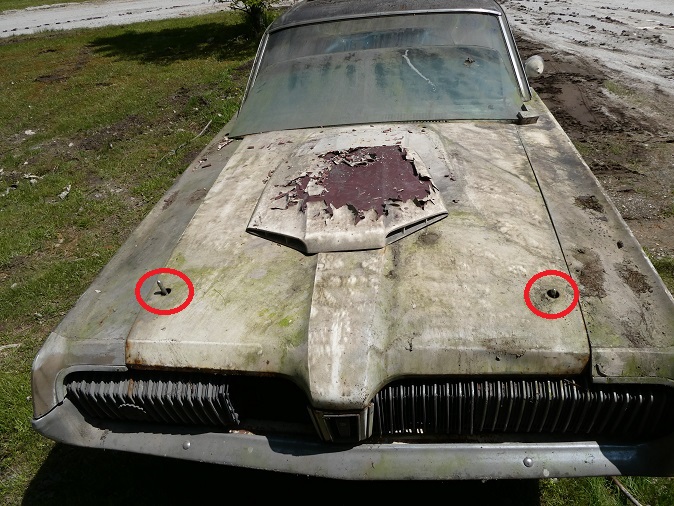 The hood pins are the same as the ones on the 68 Shelby's. No suprise as they were both converted by A.O. Smith. The lanyards for this car are missing unfortunately, but I do have an NOS pair of the chrome disks that stick to the hood.